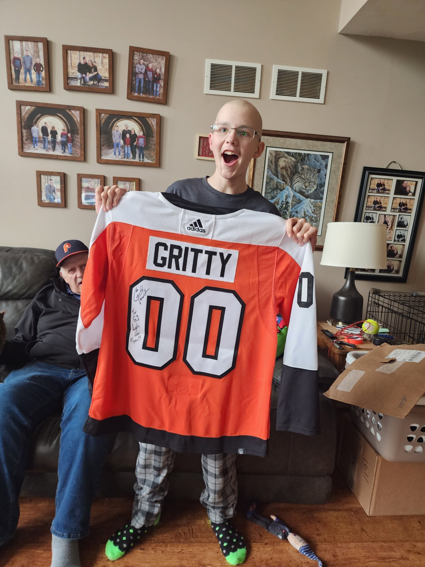 There’s no shortage of sports stars in Philadelphia, but when it came time to choose, CJ asked for a Gritty jersey because the Flyers mascot best reflects his personality.