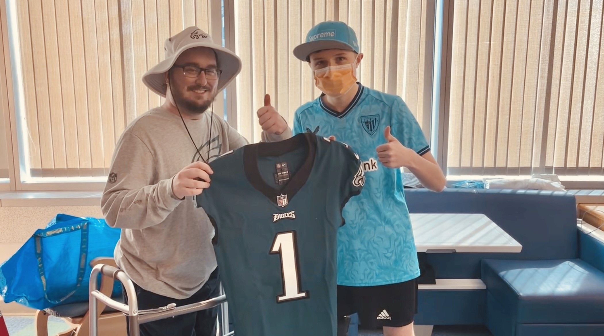 Cole, a life-long Eagles supporter, was thrilled when Massi and Jerseys4Kids presented him with a Jalen Hurts jersey, just the latest sign of the Eagles support for one of their biggest fans